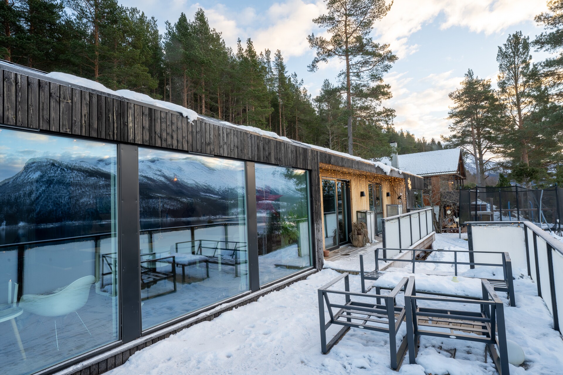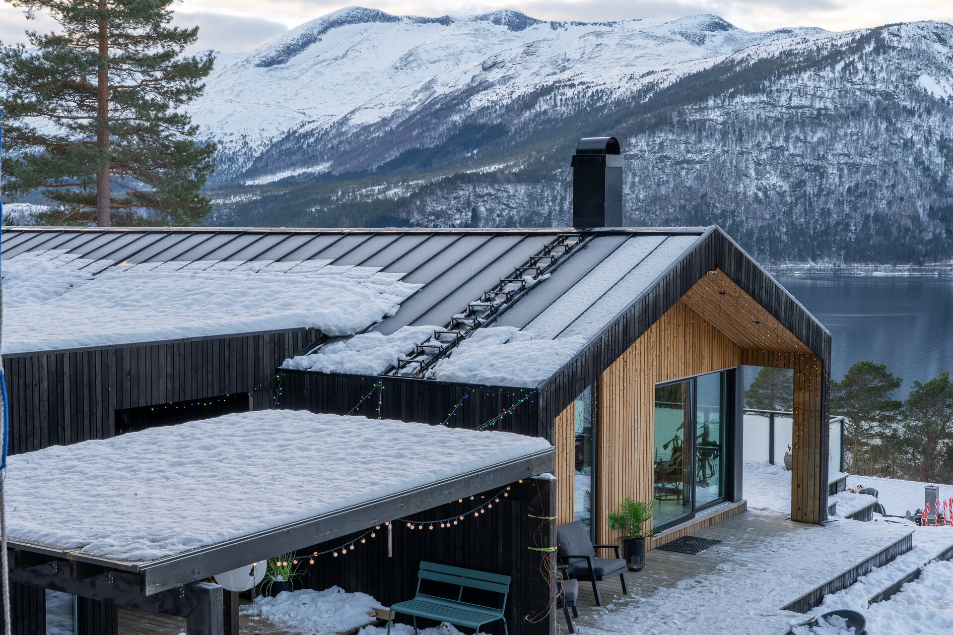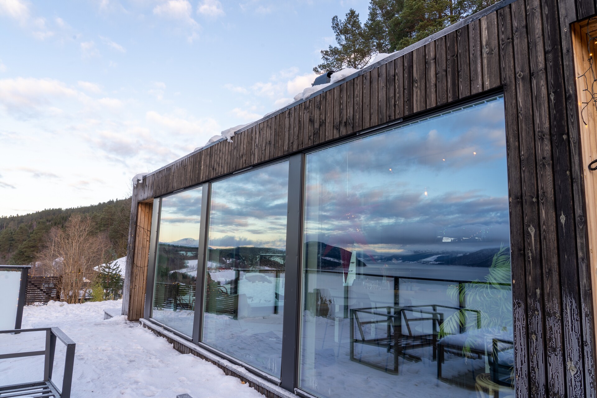 Det er også brukt MøreRoyal terrassebord UNO med farge natur på terrassen, som var isdekt da vi besøkte Ingrid og Terje.